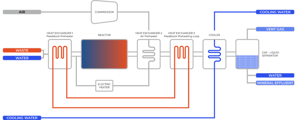 Our proven and proprietary AirSCWO (supercritical water oxidation) technology works by tapping into the water’s unique properties at its critical point, 374°C / 705°F. It destroys contaminants and converts waste into clean, reusable water, inert minerals, and recoverable energy. Our process’s effluents are free of emissions, PFAS (“Forever Chemicals,”), and residue, regardless of waste type.